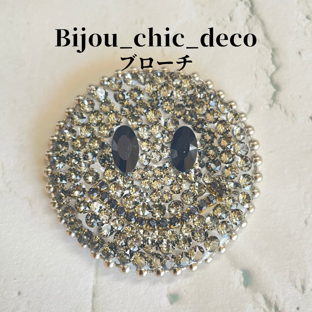 このブローチは、ビジューが贅沢に使われたニコちゃんマークのデザインが特徴で、どんなコーディネートにも華やかさをプラスしてくれます。ビジューの煌めきがあなたの個性を引き立て、特別な日だけでなく、普段使いにもぴったりです。