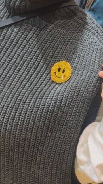 ニコちゃんマークの親しみやすさとビジューの豪華さが融合したこのブローチは、シンプルなTシャツやカーディガンに合わせるだけで、一瞬でおしゃれな印象を引き立ててくれます。